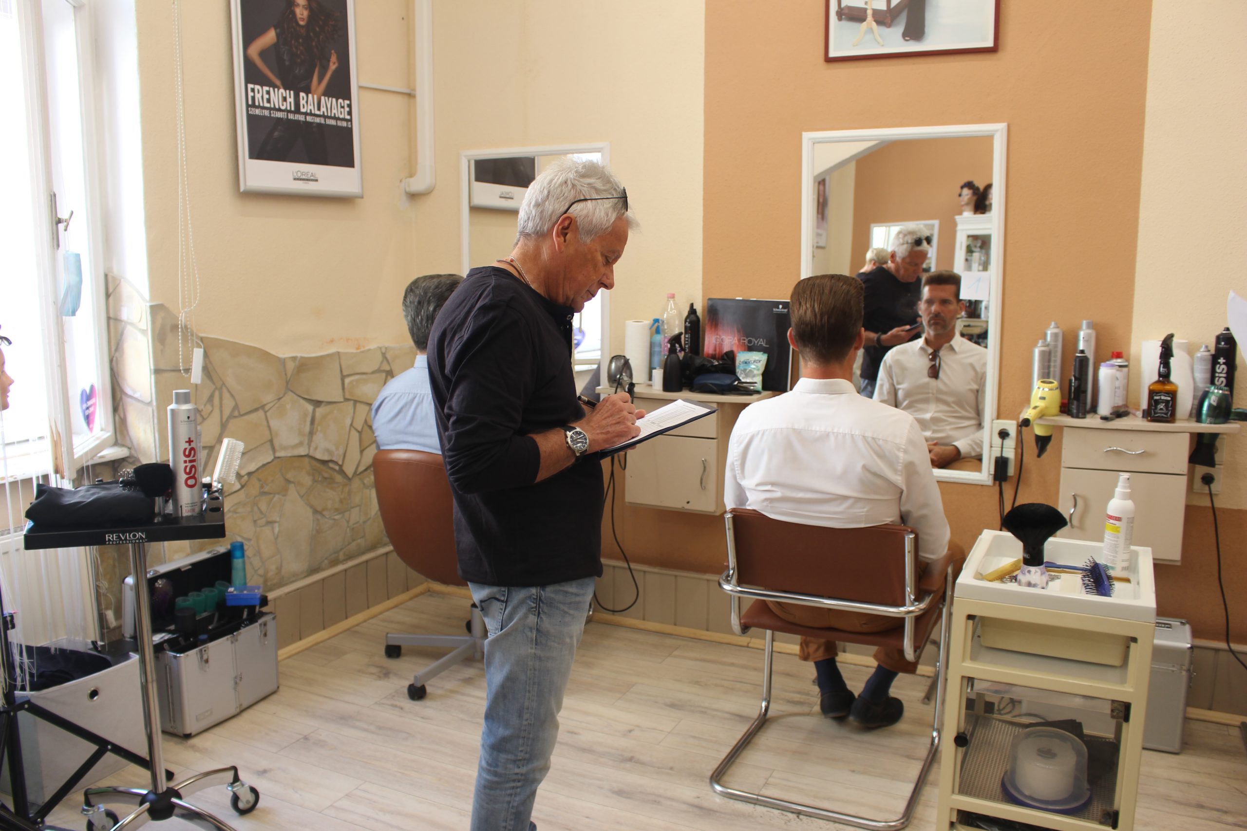 A gyakorlati vizsgán a mesterjelölteknek több különböző feladatot kellett megoldaniuk például férfi klasszikus hajvágás, borotválás, női alkalmi frizura készítés, marcell vízhullám készítés.