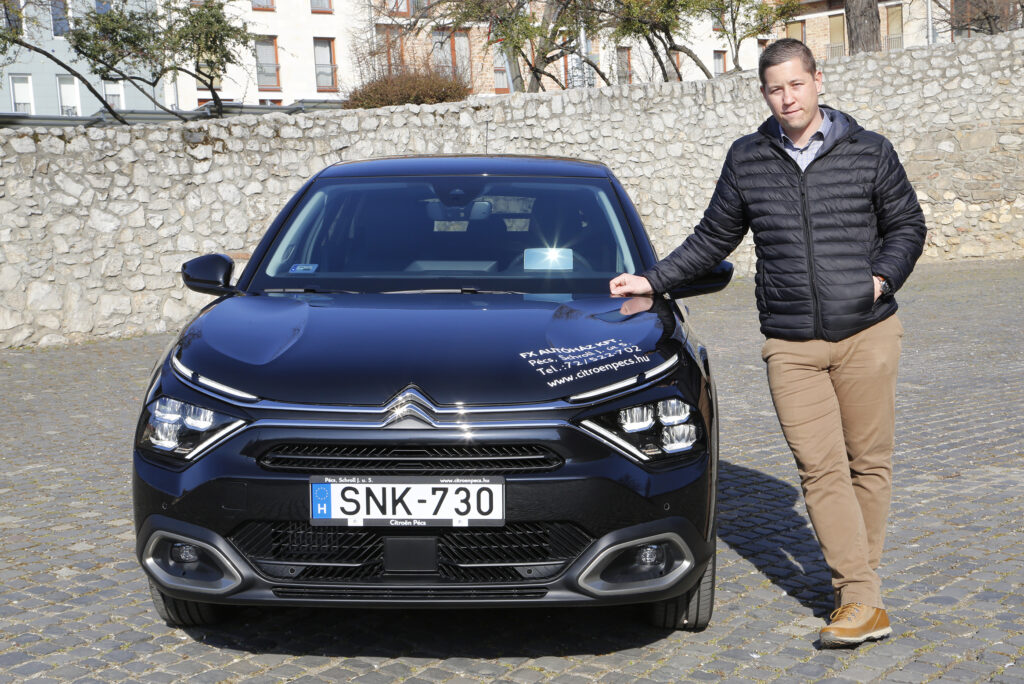 Családapaként is fontos, és a LAFARGE-nál is kiemelt figyelmet fordítunk a biztonságra. A cégautó szabályzatunkban is szigorú kritériumok szerepelnek a biztonsági berendezésekre vonatkozóan, és képzéseket is szervezünk a munkatársaknak. Én is, és a kollégáim is sokat utazunk, így mindent megteszünk azért, hogy ezeket a kilométereket minél biztonságosabb járművekkel, megfelelő vezetéstechnikai tudással felvértezve tegyük meg. A C4-es ebből a szempontból jól vizsgázott, és itt elsősorban nem is a töréstesztre, a légzsákokra vagy a menetstabilizálóra gondolok, hiszen ezeket ma már szinte minden gyártó maximális hatékonysággal építi az autóiba. Az elektronikai segédeszközök terén is jól áll az új C4. tetszik a sávtartó, amit jól programoztak, de a jól működő Head Up display is a biztonságot fokozza. A katalógus 20 vezetéstámogató rendszert sorol fel, ezek közül nagyon hasznos az itt Highway Drive Assistnak nevezett megoldás, ami az adaptív tempomatot és a sávtartót kezeli egységes rendszerként, és autópályán szépen követi az út vonalvezetését és az előttünk haladók tempóját. Egy budapesti úton az M6-oson ez nagyon pihentető és biztonságos. Akár biztonsági berendezésként értékelhető az is, hogy a mai világban már soknak számító fizikai gombot is kapott az autó, így nem kell a menüben kotorászni a szellőzés állításához, vagy az ülésfűtés bekapcsolásához.
