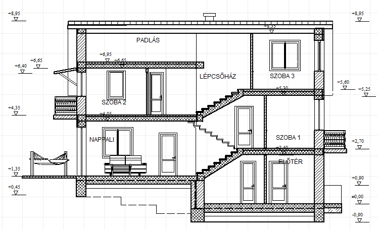 5. Jó megfigyelők vagytok? A következő metszetek egy félszint eltolásos ház két metszetrajzát mutatják. 10 különbség van közöttük. Keressétek meg őket!