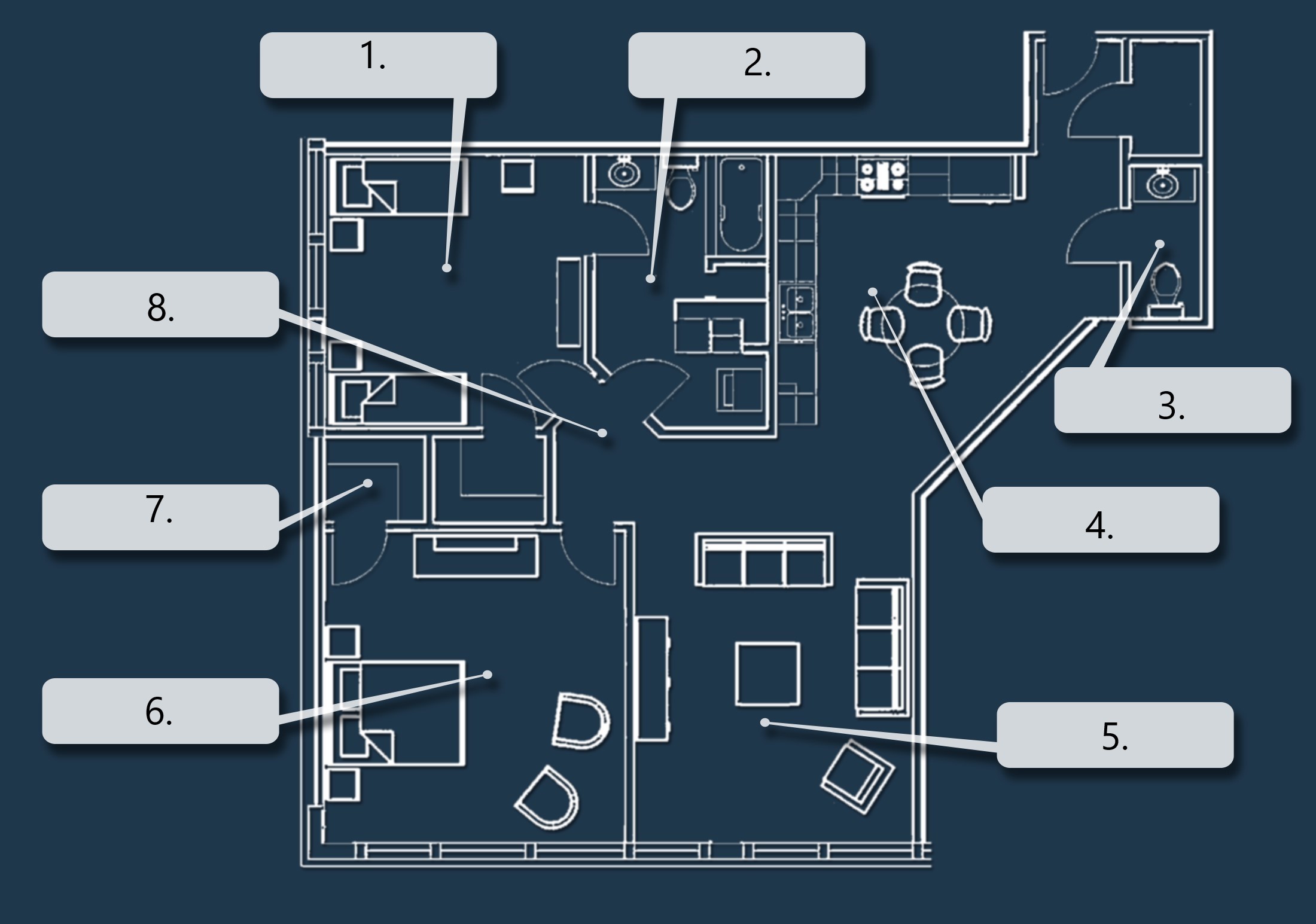 15. Próbáld kitalálni, melyik helyiség hol lehet a lakásban!