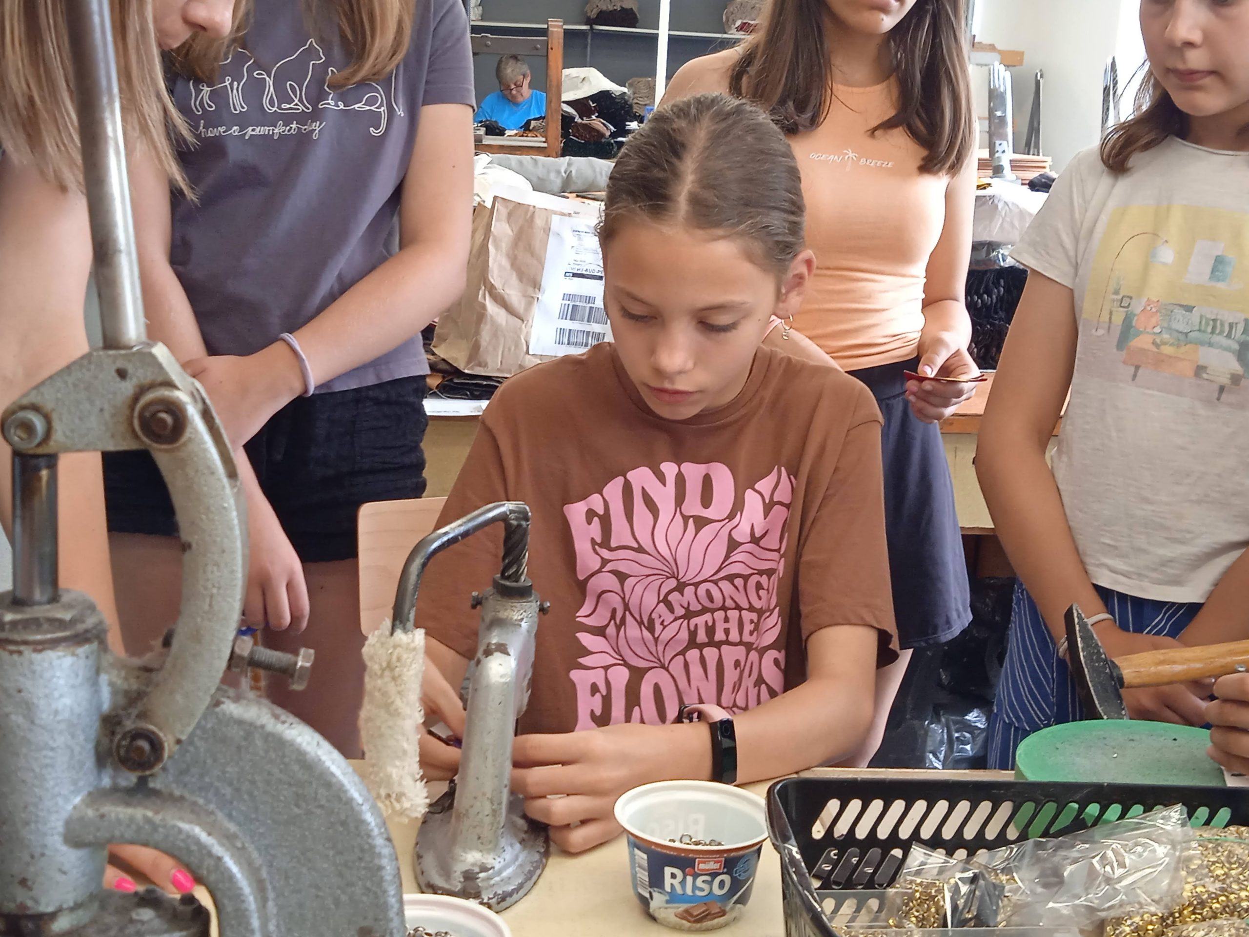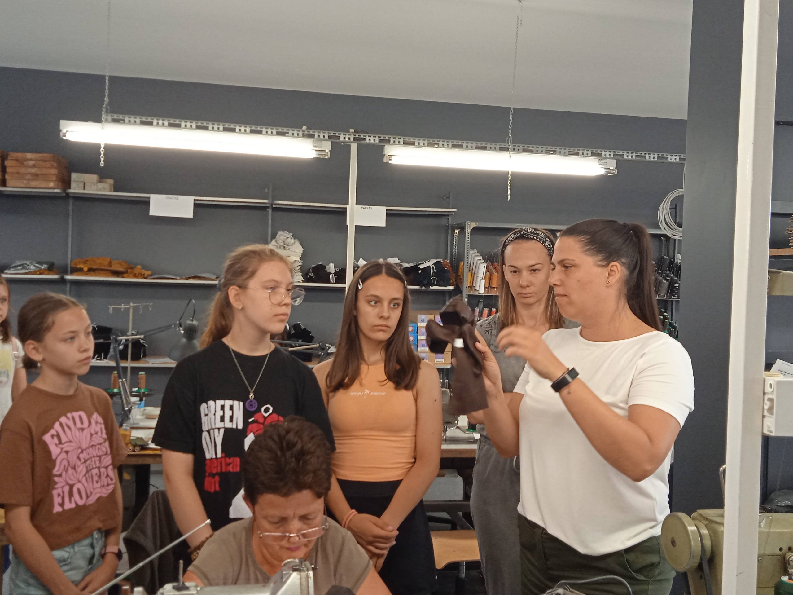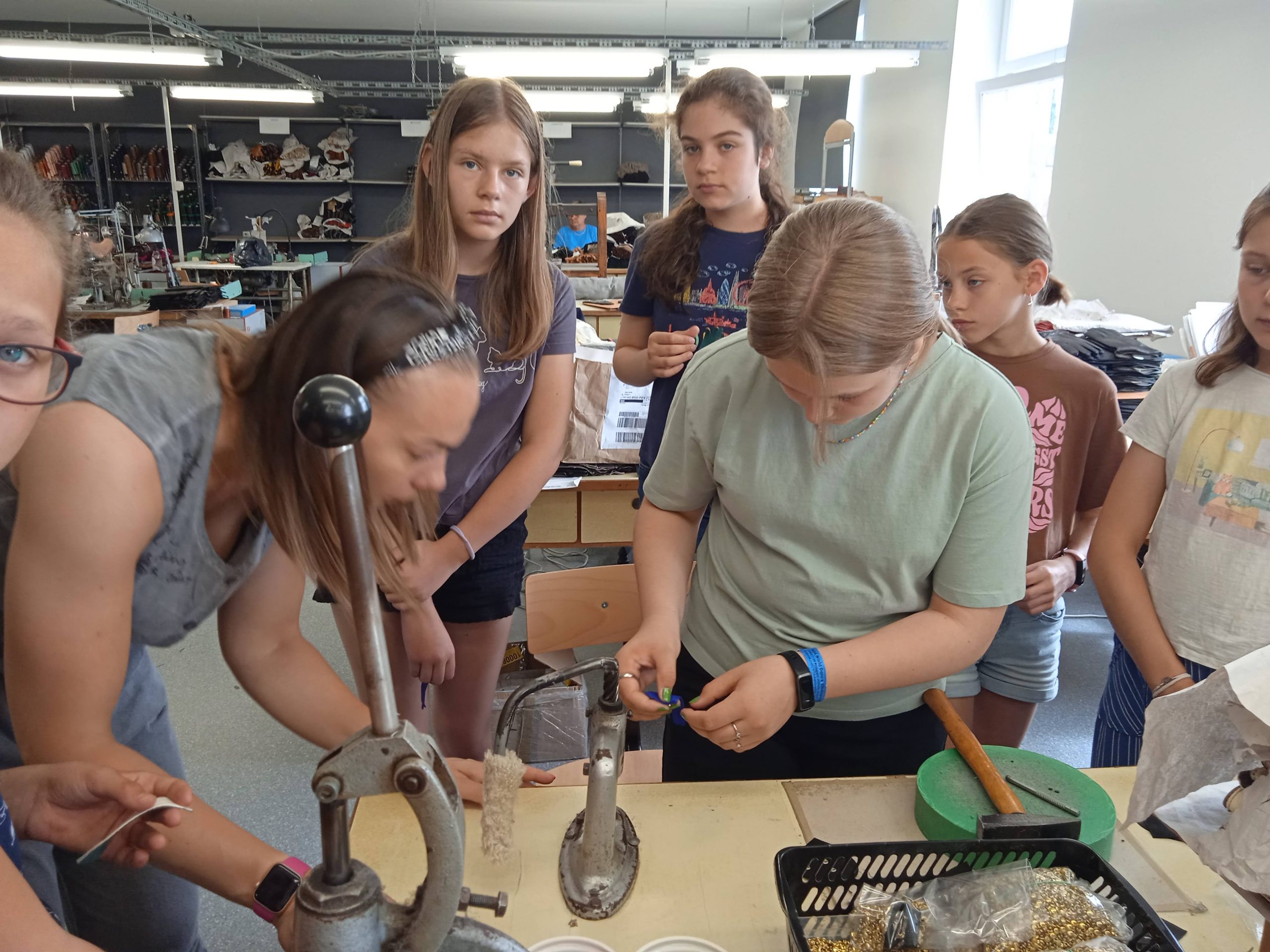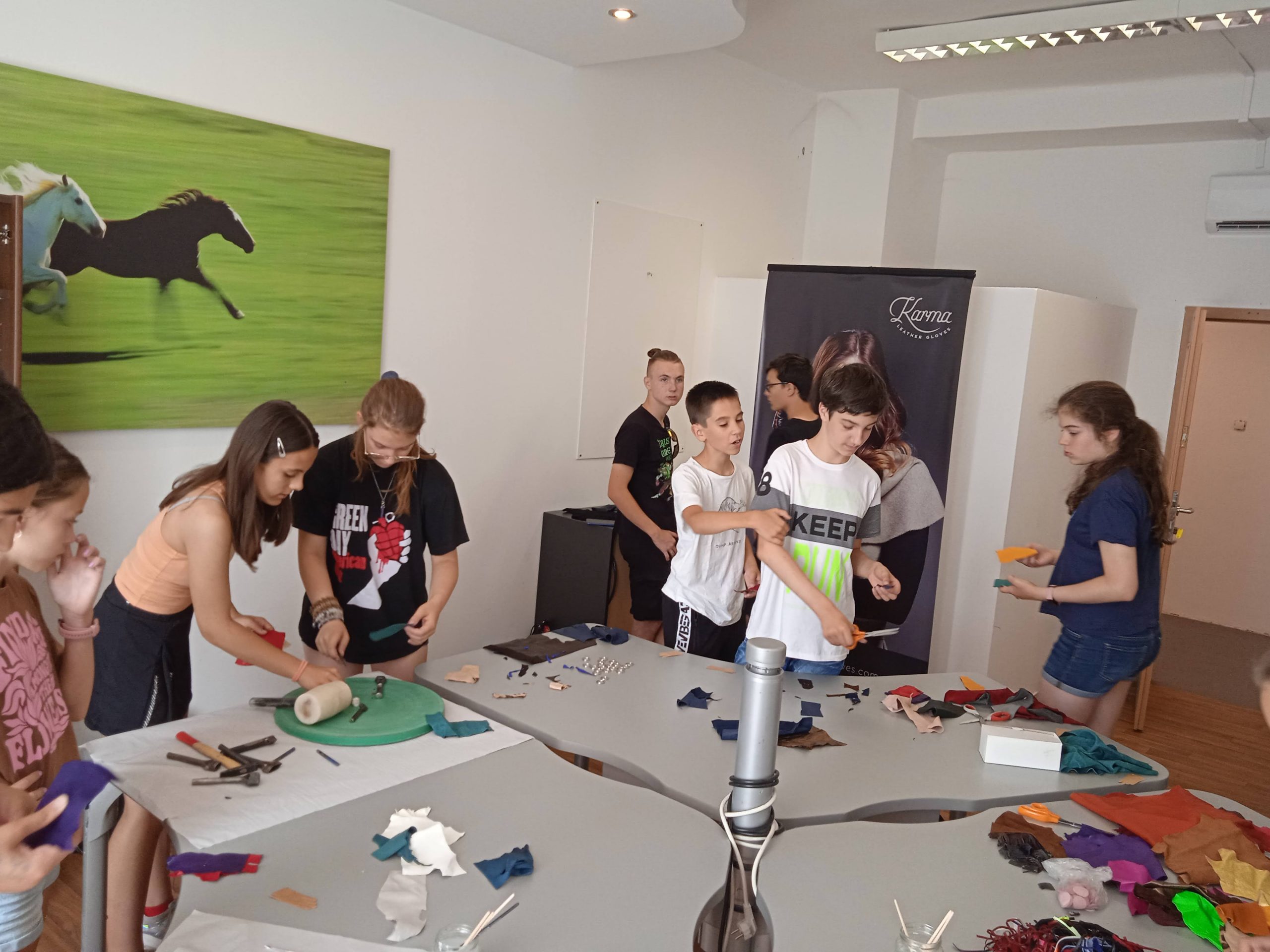 A pécsi kesztyű évtizedek óta fogalom a divat világában. A Karma Pécsi Kesztyű ezen hagyományok mentén gyártja ma is a prémium minőségű divat kesztyűit. A táborozók lépésről lépésre megismerték a kesztyűgyártás folyamatát, megérinthették a különleges bőröket. Testközelből láthatták, hogy a gyártási technológia a mai napig a régi nagy tekintélynek örvendő kézi gyártás, ami garantálja a legjobb minőséget. A jól képzett munkaerőnek, szabászoknak, varróknak, a technológiai háttérnek, tervezőiknek és az óriási múlttal rendelkező manufakturális gyártásnak köszönhetően termékeik egyedülállóak a világon. A délelőtt végén minden gyermek egy saját maga által „tervezett” kesztyű formájú (természetesen) kulcstartót készített.