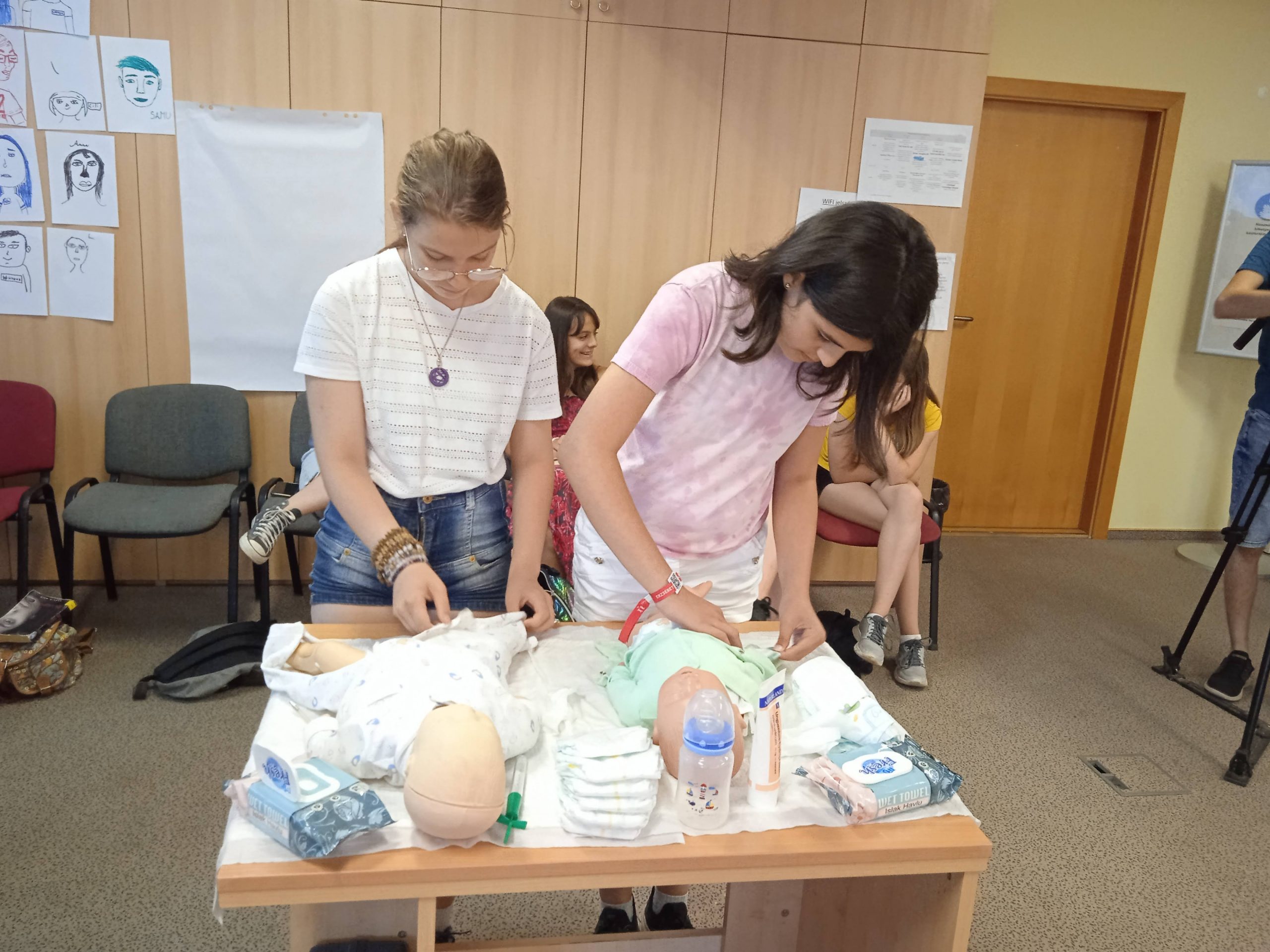 Magyar Egészségügyi Szakdolgozók Kamarájától Szilber Vilmos Dávid sürgősségi ápoló és Demeterné Medve Éva gyakorló gyermekintenzív ápoló jött el hozzánk és gyakorlatias foglalkozáson keresztül mutatta meg nekünk mivel is foglalkozik egy ápoló. Milyen sok szakember összetett és szervezett munkájával lehet életet menteni, az egészséges életet visszaállítani. Kipróbáltuk, hogy mi a teendő az újraélesztés esetén, egy baleset bekövetkeztekor hogyan zajlik a mentés. Csecsemőápolás, helyes kézmosás, és tudatos, egészséges táplálkozásról is volt interaktív foglalkozás. Óriási tapasztalat, szakma iránt érzett olthatatlan szeretet és lelkesedés áradt Évából és Vilmosból. Köszönöm, hogy velünk voltatok!