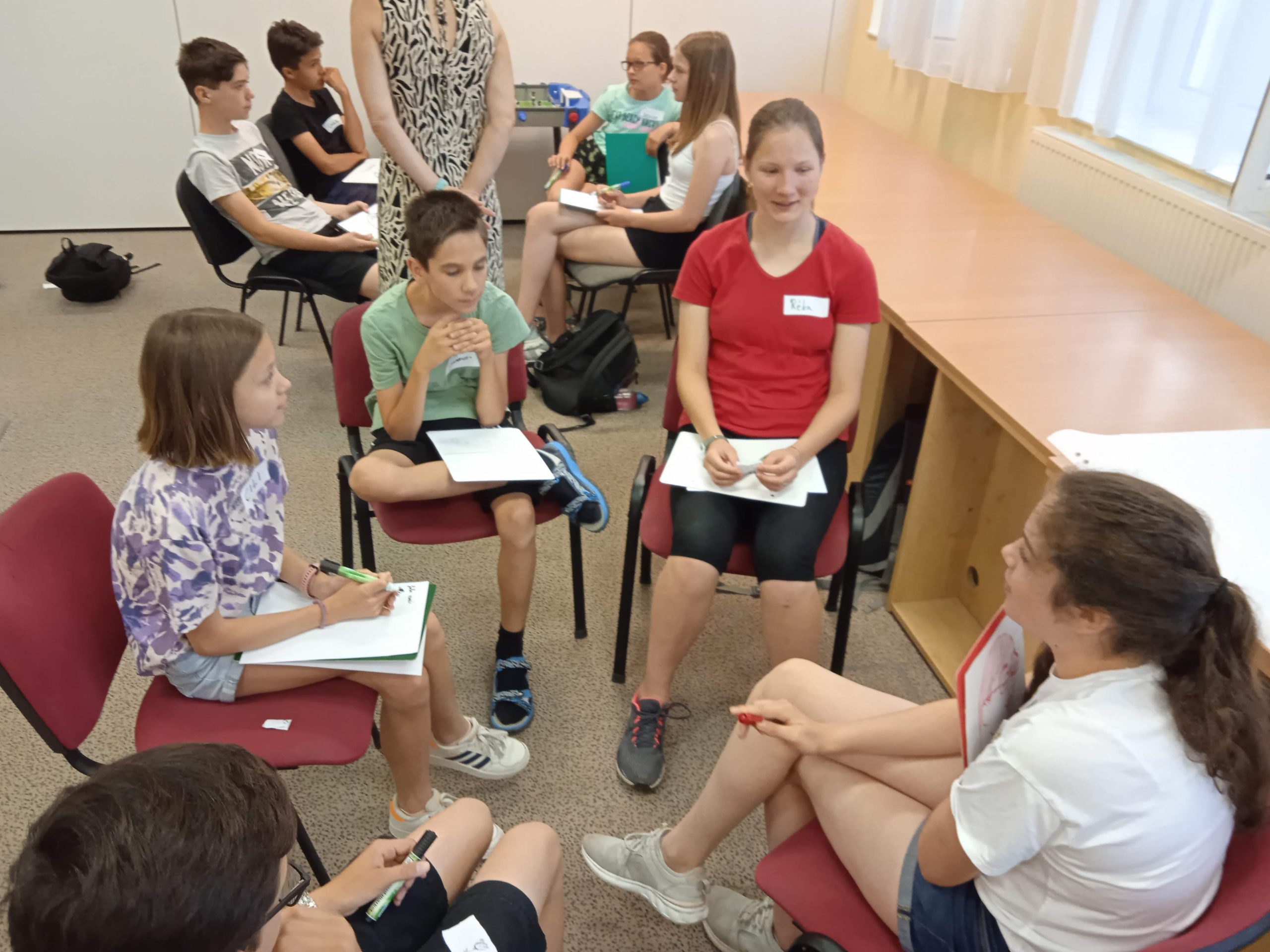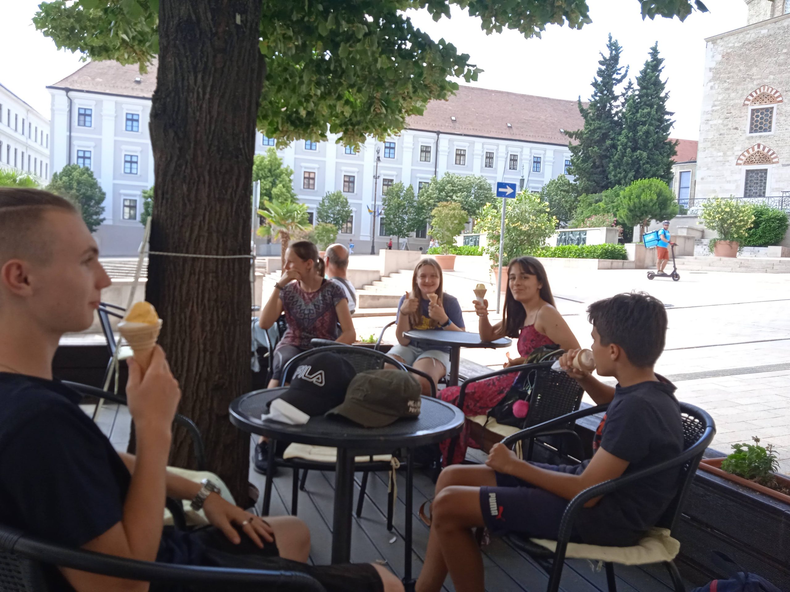 A céglátogatások és műhelyfoglalkozások után mindig jutott idő az aktív pihenésre is. Szabadulóparkban, Laser Cornerben csapatmunkát, logikát igénylő feladatokat kellett megoldaniuk, a gokart pályán igazi robbanómotoros gokartokon versenyeztek a táborozók, fagyiztunk Pécs belvárosában, a város ikonikus Székesegyházának tornyába felkapaszkodtunk és madártávlatból néztünk körül. Nem csak offline, hanem online térben is pihentünk a VR szemüveg segítségével, a legnagyobb hőségben pedig a Tettyei mésztufa barlangban húztuk meg magunkat.