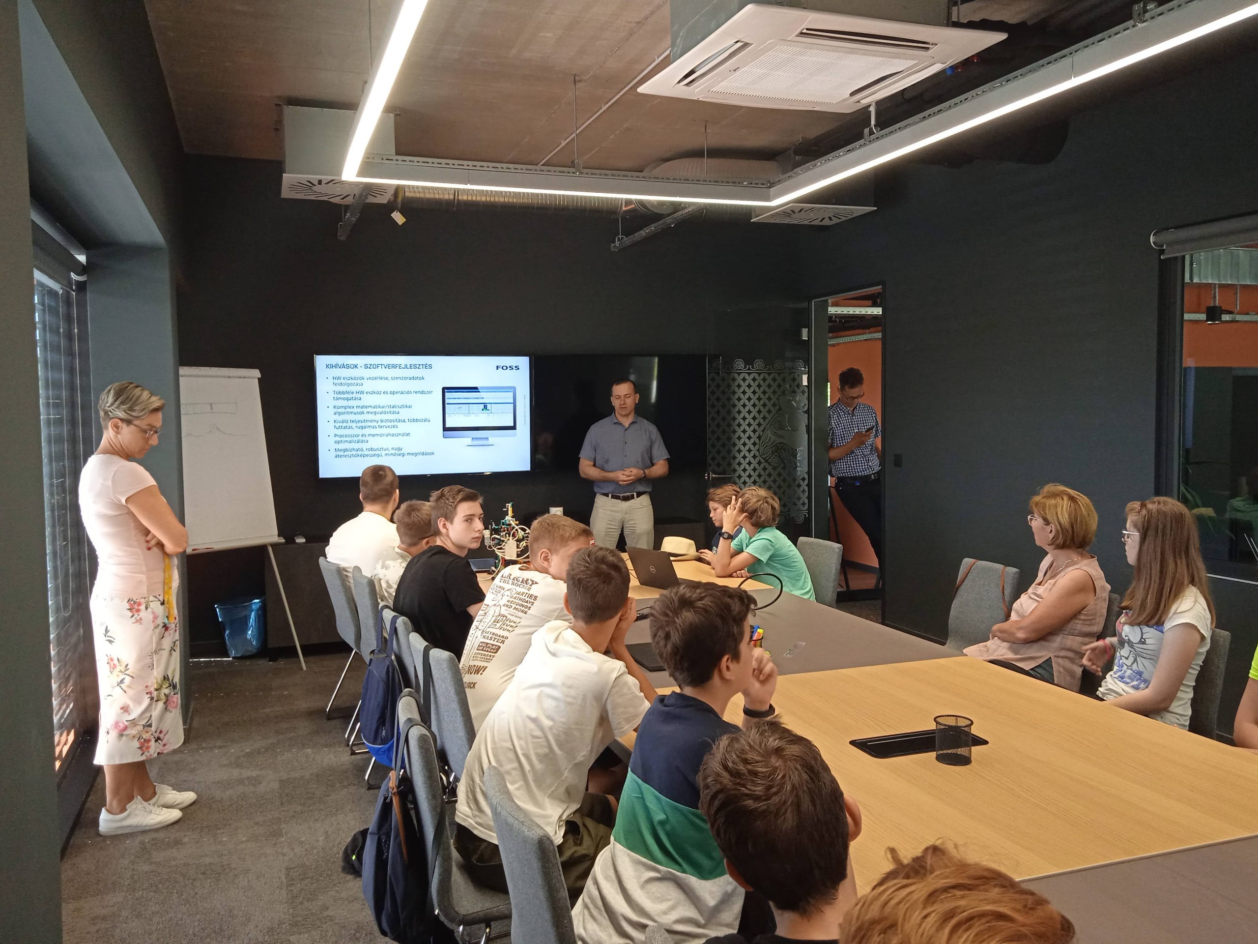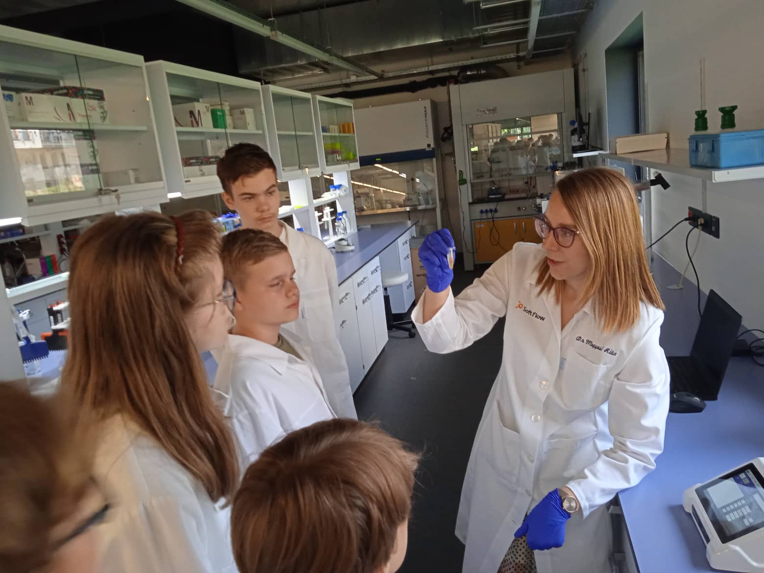 A Foss dán világcéghez tartozó Soft Flow Kft-nél tett látogatás során egyik ámulatból estünk a másikba. A cég székhelye, irodája, laboratóriuma és tevékenysége szinte futurisztikus. Élelmiszer- és takarmányanalitikai műszereket fejlesztenek és gyártanak, melyek segítenek a partnereknek gyors és hatékony, automatizált elemzéseket végezni termékeikről. A cég mérnökei a tizenéveseknek jól érthető módon, interaktív foglalkozásokon keresztül mutatták be a mérnöki, technikusi szakmákat, munkaköröket. Megértettük és megtapasztaltuk, hogy milyen sikeresen képesek együtt dolgozni a különböző tudományterületek: gépészmérnök, villamosmérnök, informatikai mérnök, molekuláris biológus, biofizikus, gyógyszerész, orvos, laboratóriumi technikus. Megmértük a laboratóriumban a kóla és az energiaital koffein tartalmát és Lego mindstorm-ot programoztunk. Tudtuk, hogy izgalmas délelőtt lesz, na de erre nem számítottunk!