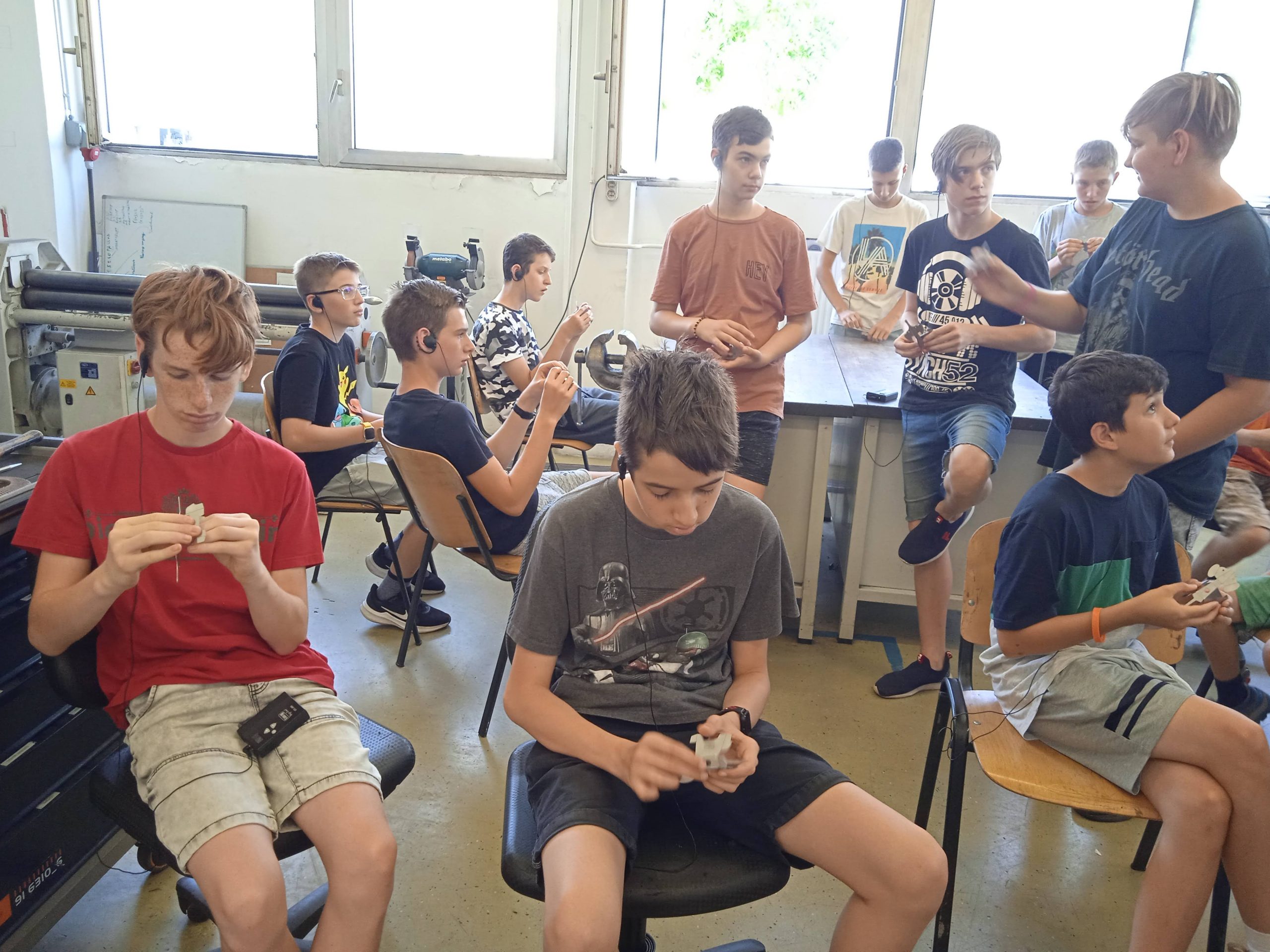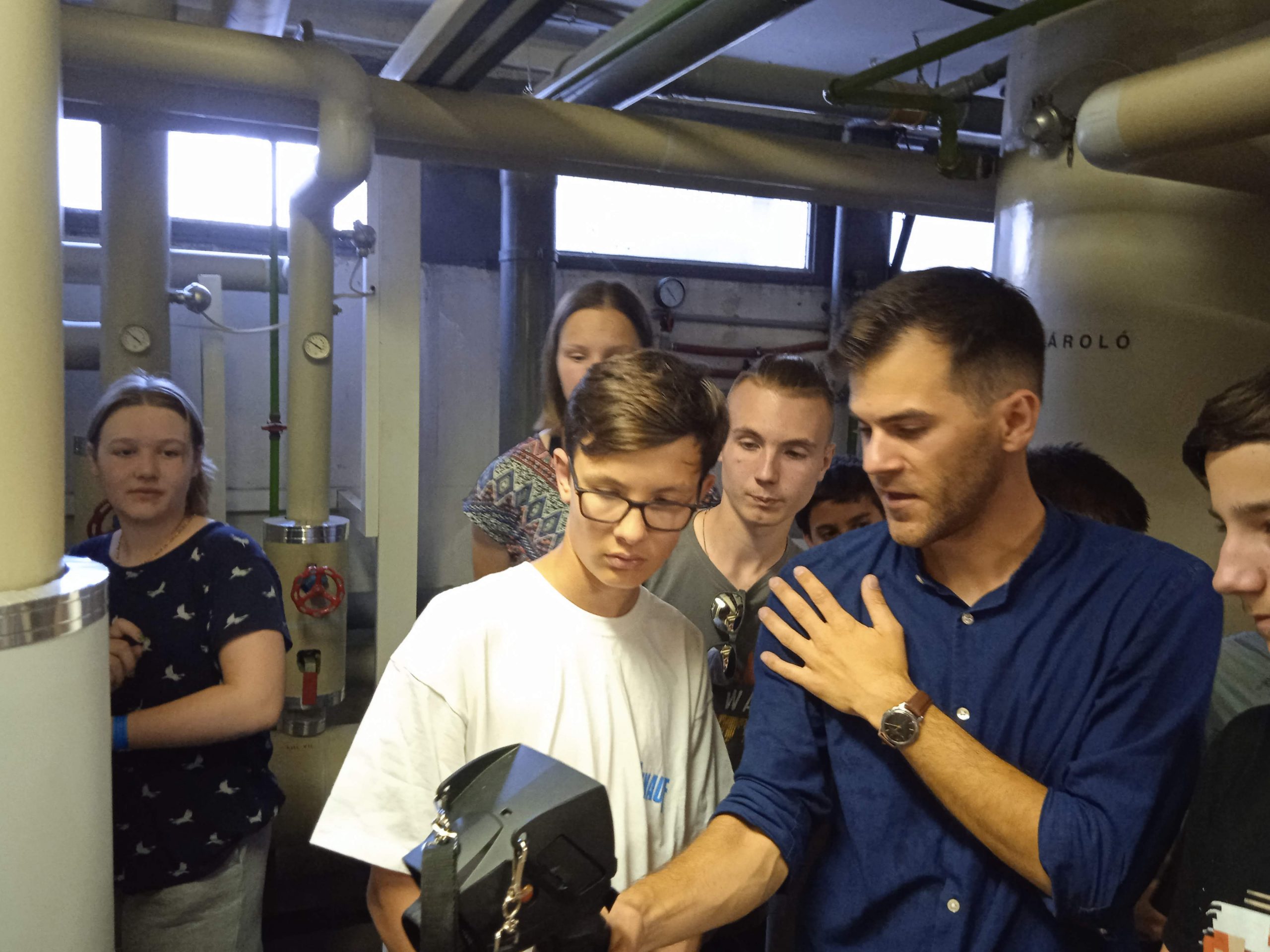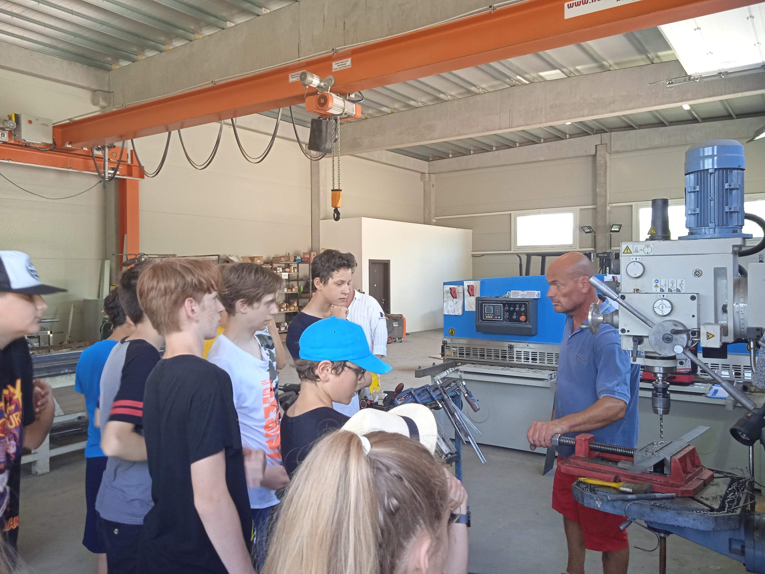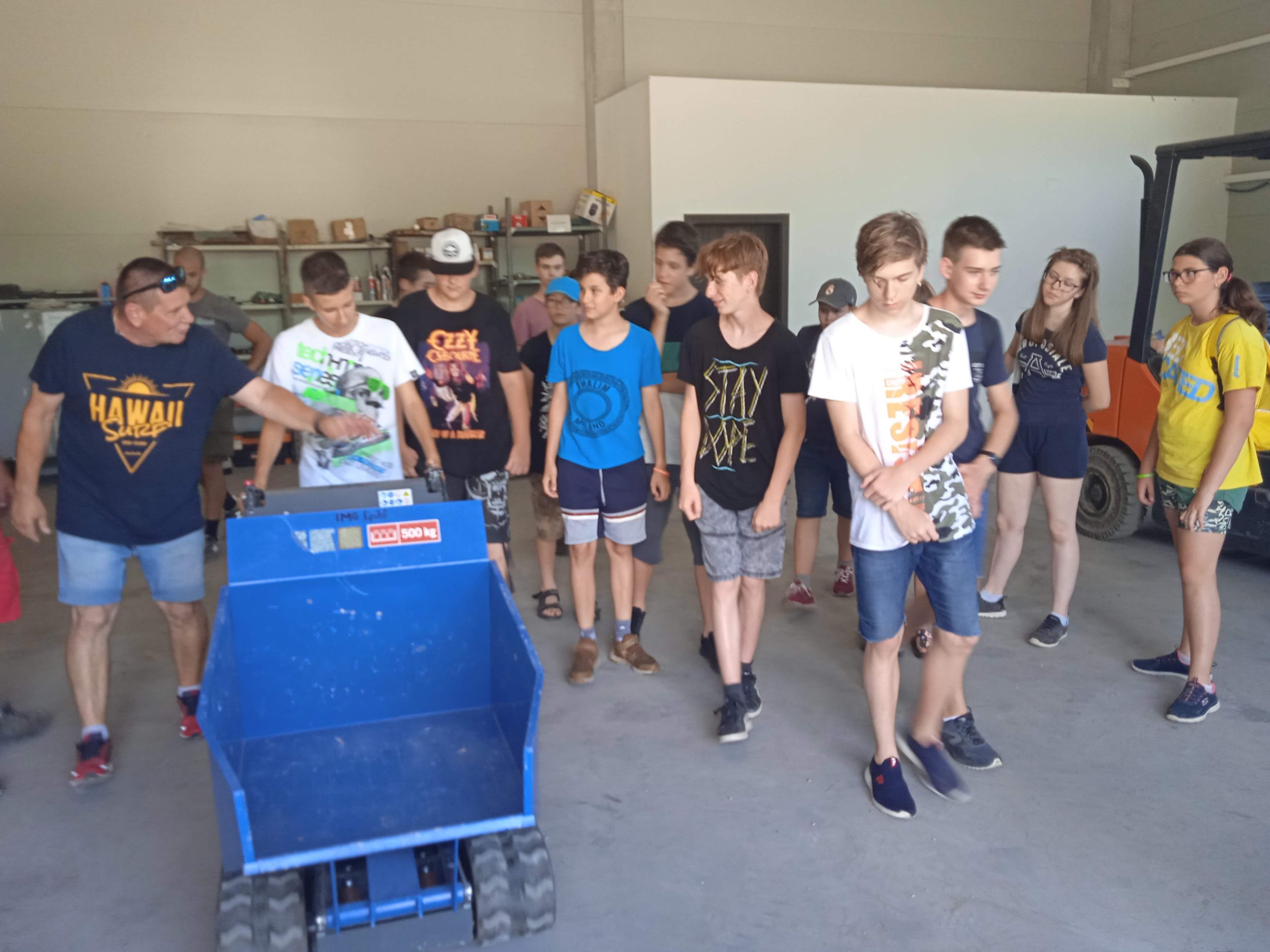 A nap kezdéseként bejártuk a pécsi székhelyű cég csarnokait. A régió legnagyobb ipari foglalkoztatója, több mint ezer munkavállalónak, köztük mérnököknek, gép- és fémipari végzettségű szakmunkásoknak ad munkahelyet. Megtapasztaltuk, hogy a régiós szinten egyedülálló gépparkban, a magasan képzett munkatársak, világszínvonalú berendezéseken dolgozhatnak. A forgácsoláson, a lemezmegmunkáláson, a szerkezeti egységek és a gépek összeszerelésén keresztül egészen a komplett gépek és berendezések fejlesztéséig számtalan gépipari szakmákat és munkaköröket láthattunk termelés és munka közben. A magas színvonalon felszerelt tanműhelyben a gyakorlati oktatók irányításával interaktív foglalkozáson vehettünk részt, egy kis elefántot hajlítottak a táborozók, melybe a nevüket is bele gravírozhatták.