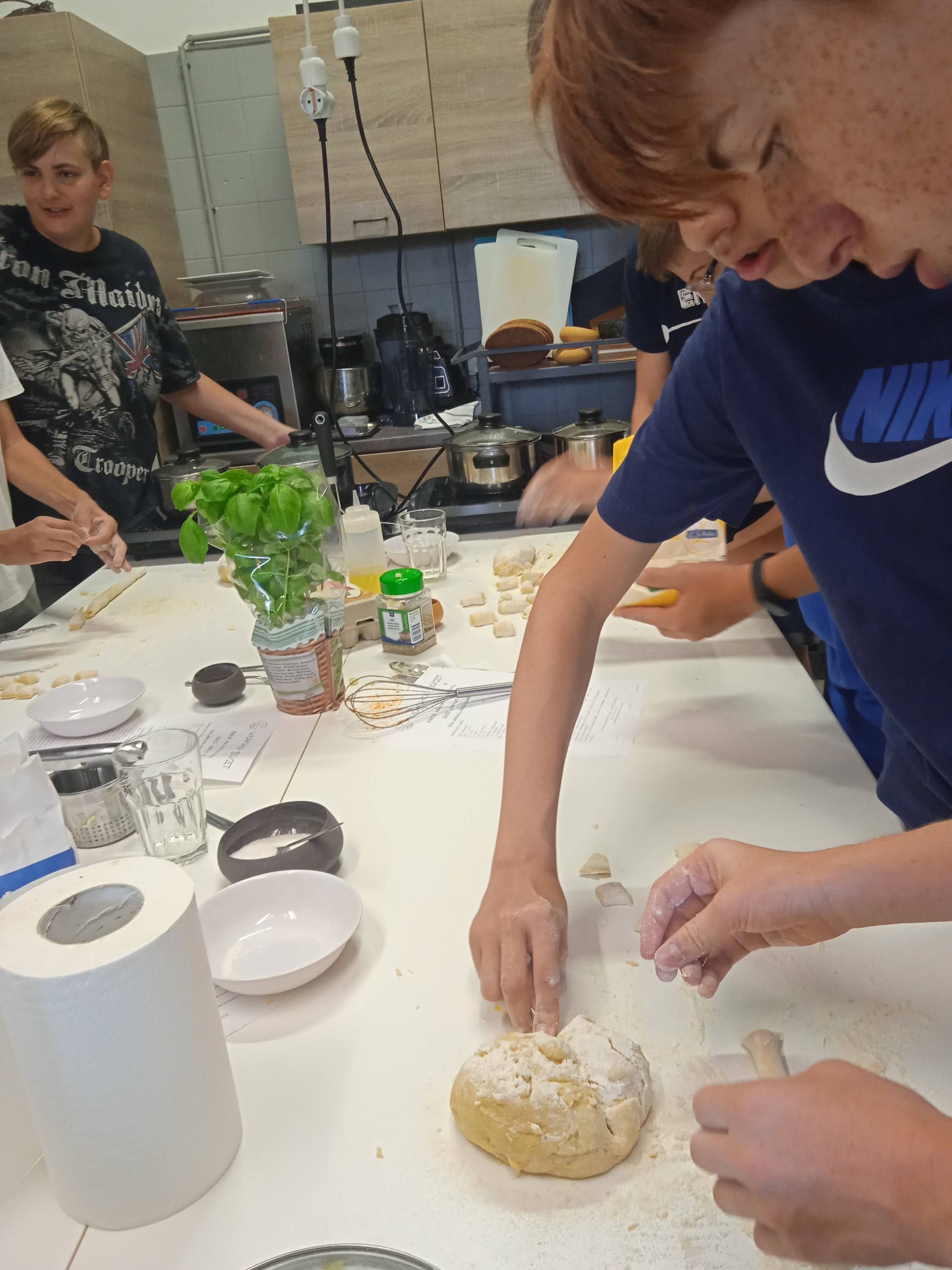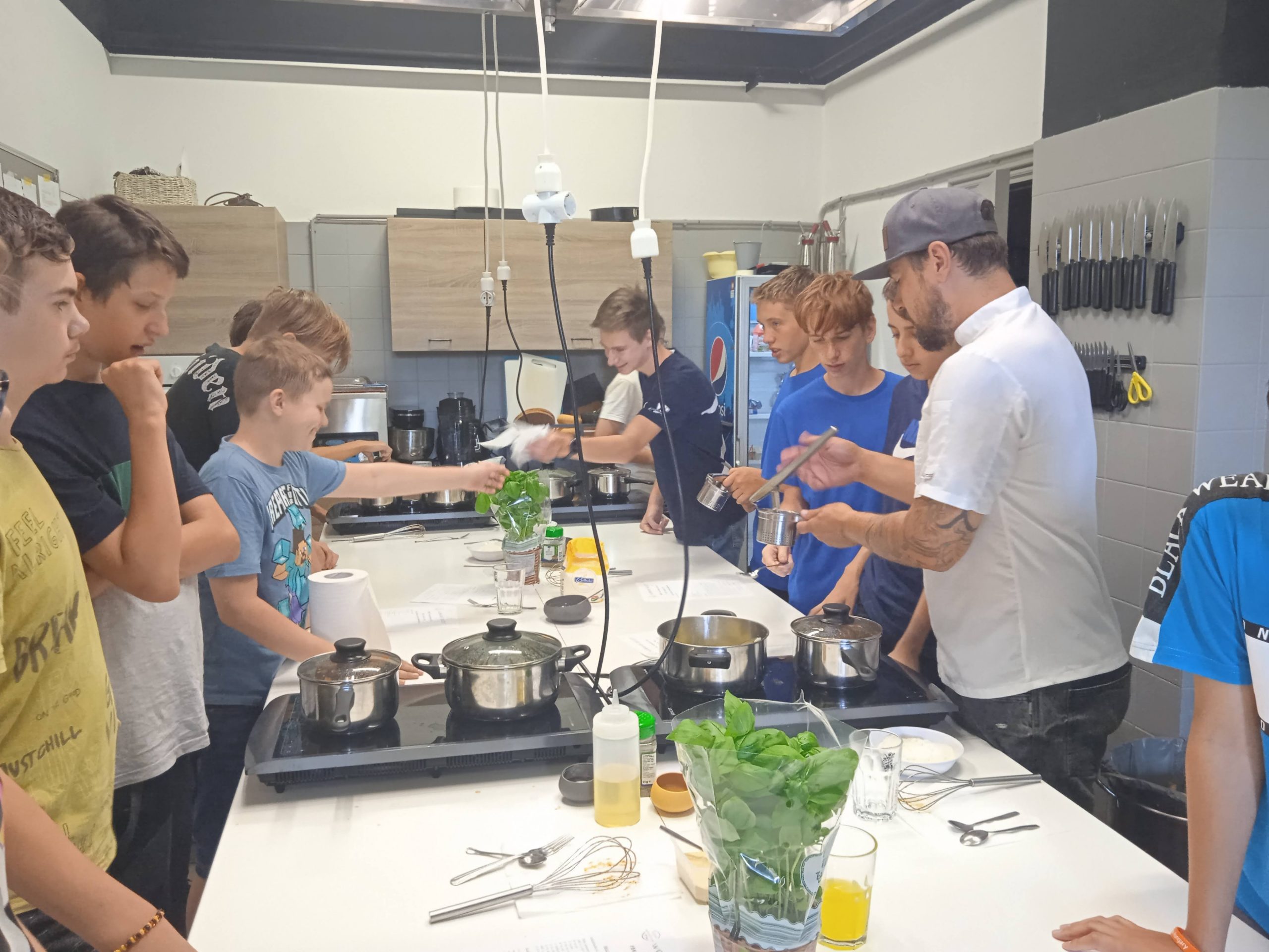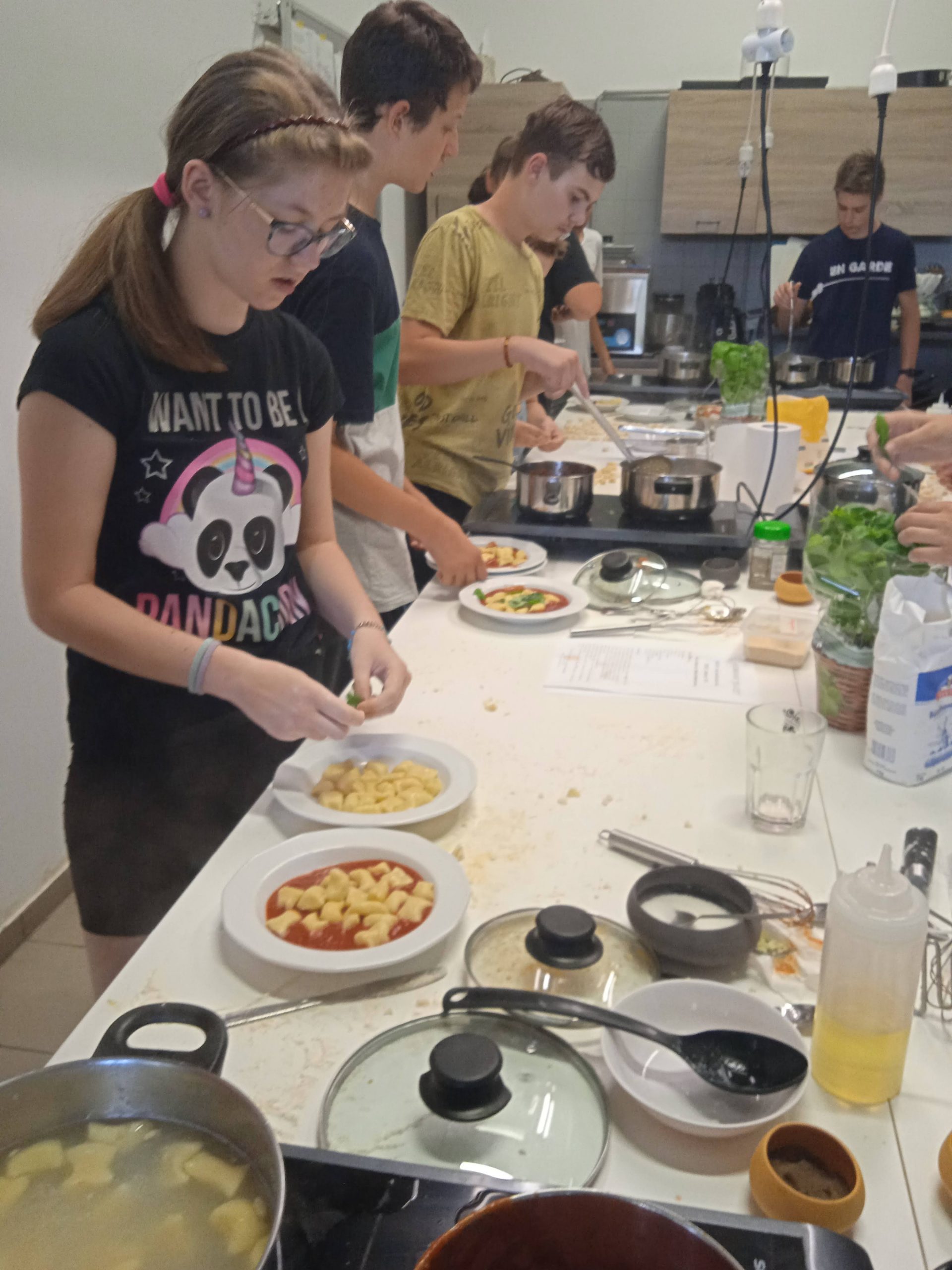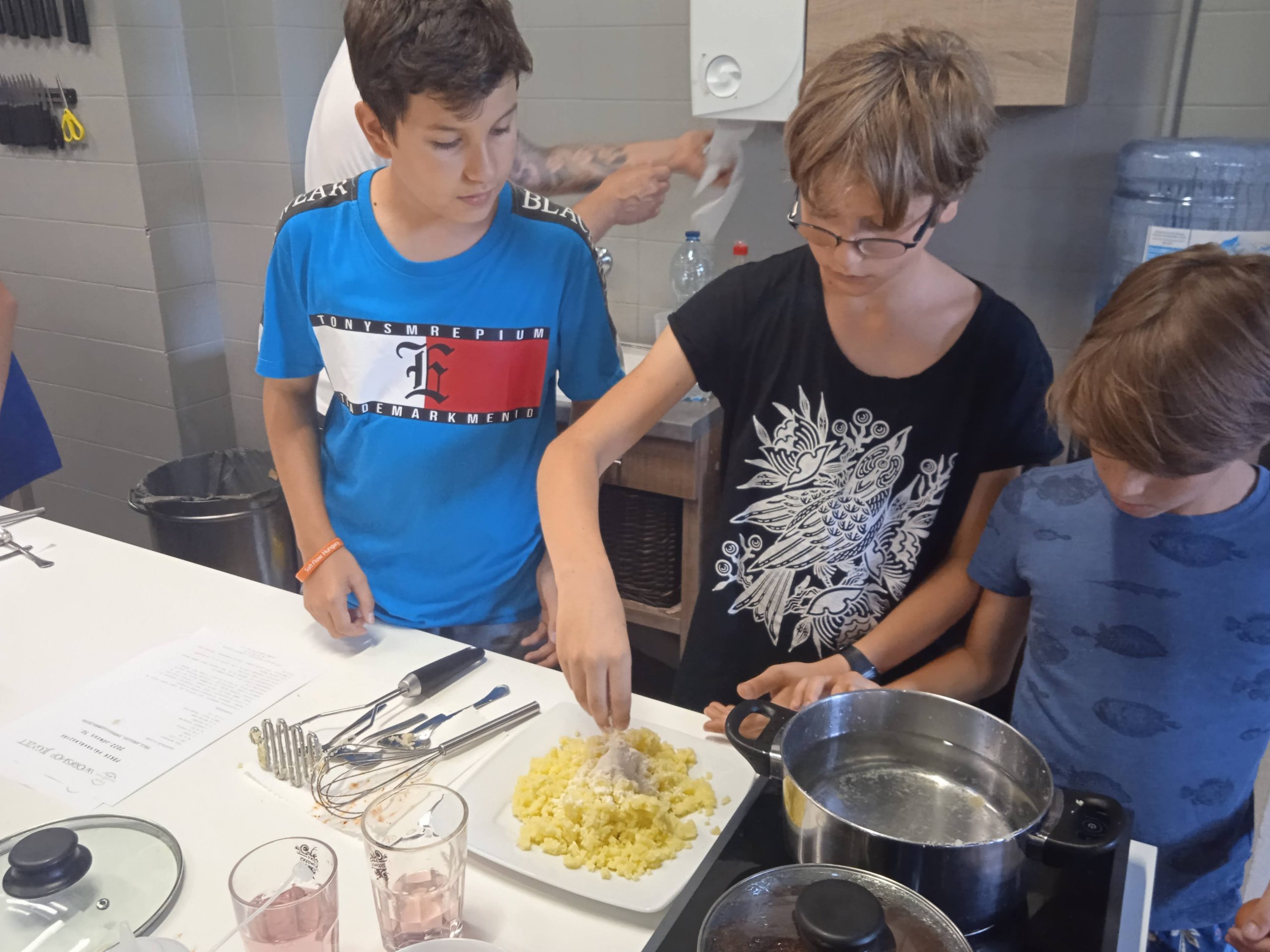 Főzési alapismereteket tanultunk Lánczos Sándor szakács mester gasztrostúdiójában. Idén egy olasz alapételt, paradicsomos gnocchit főztünk, friss alapanyagokból, zöldfűszerrel. Egy ilyen főző alkalom tökéletes arra, hogy a gyerekek bátrabban próbálgassák ki az ízeket, a főzési módokat, önállóan merjenek a tűzhely elé állni és megtudják, hogy a paradicsom nem csak cukros édes változata létezik a konyhában. Sándor érthetően, kedvesen és türelmesen bátorította a résztvevőket, hogy lesz ebéd…és lett!