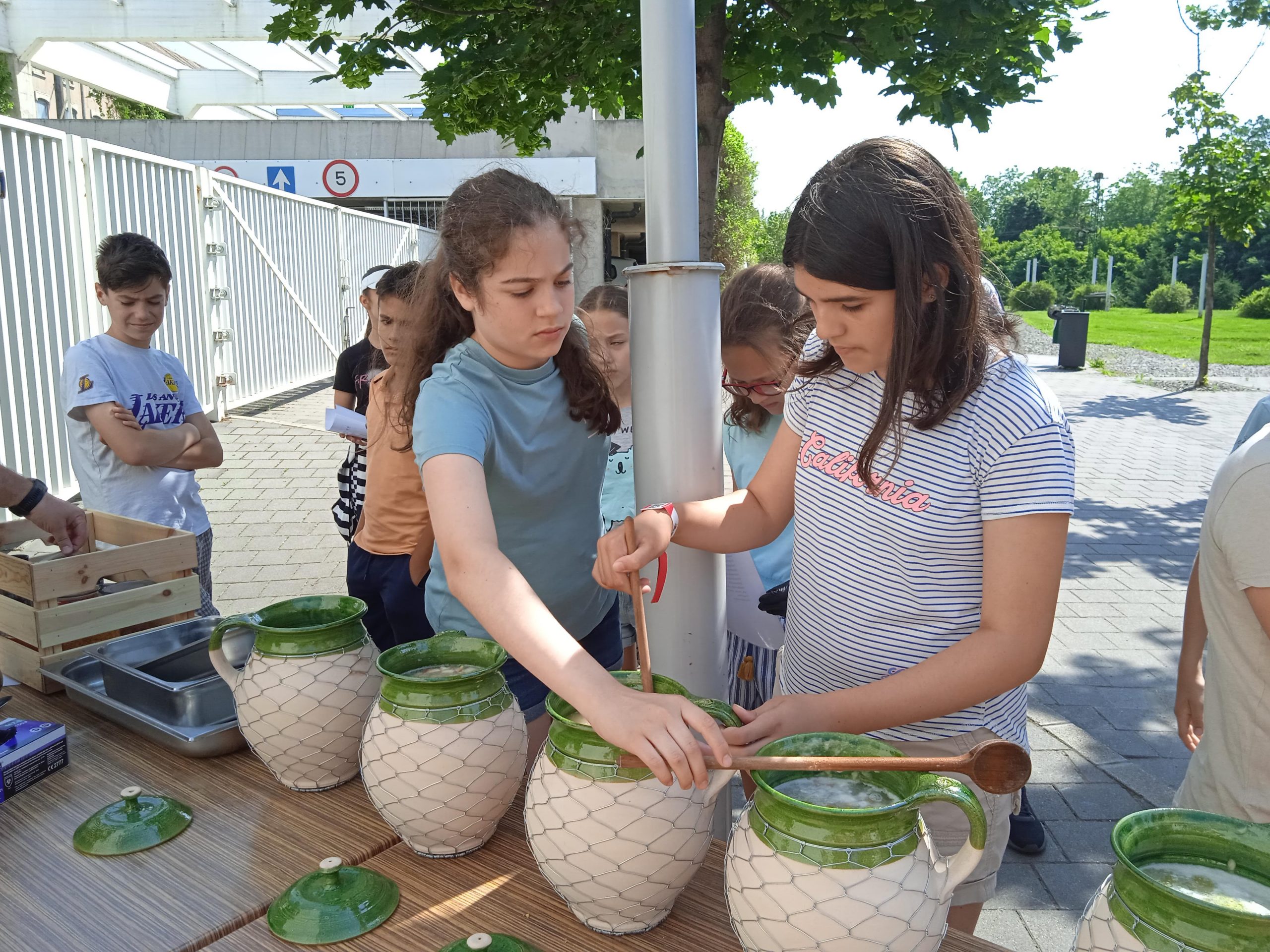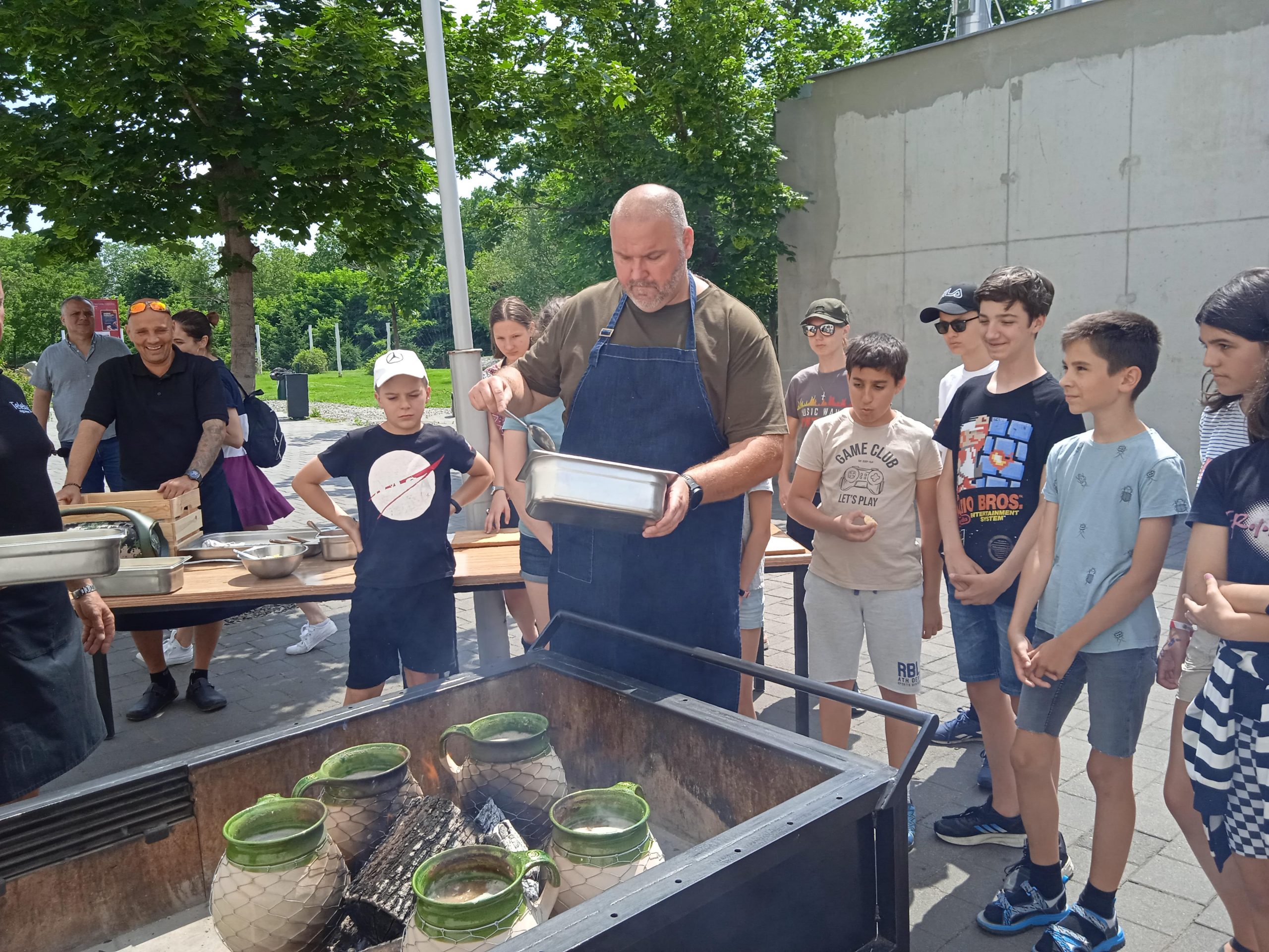 Biztosan hallottak már a Mohács környéki specialitásról a Sokác babról (köcsögös babként, csupros babként, fazekas babként is emlegetik). Nagyon látványos maga a főzés is és az összeállítása nem túl bonyolult. Szükség van hozzá egy olyan gömbölyded, megfelelő belső ívvel rendelkező cserépedényre (köcsögre), mely jól bírja a magas hőmérsékletet. A főzés módja is egyedi: nem a tűzön, hanem amellett fő az étel. Pontosabban úgy, hogy az edény az egyik oldalán kapja folyamatosan a hőt. A táborozók pontosan kimérték a hozzávalókat, Zoltán és csapata pedig nagy gyakorlattal szakszerűen segítettek a megfőzésben. Nagyon finom lett, jóllakottan (kissé lelassulva) indultunk a következő tábori programra.