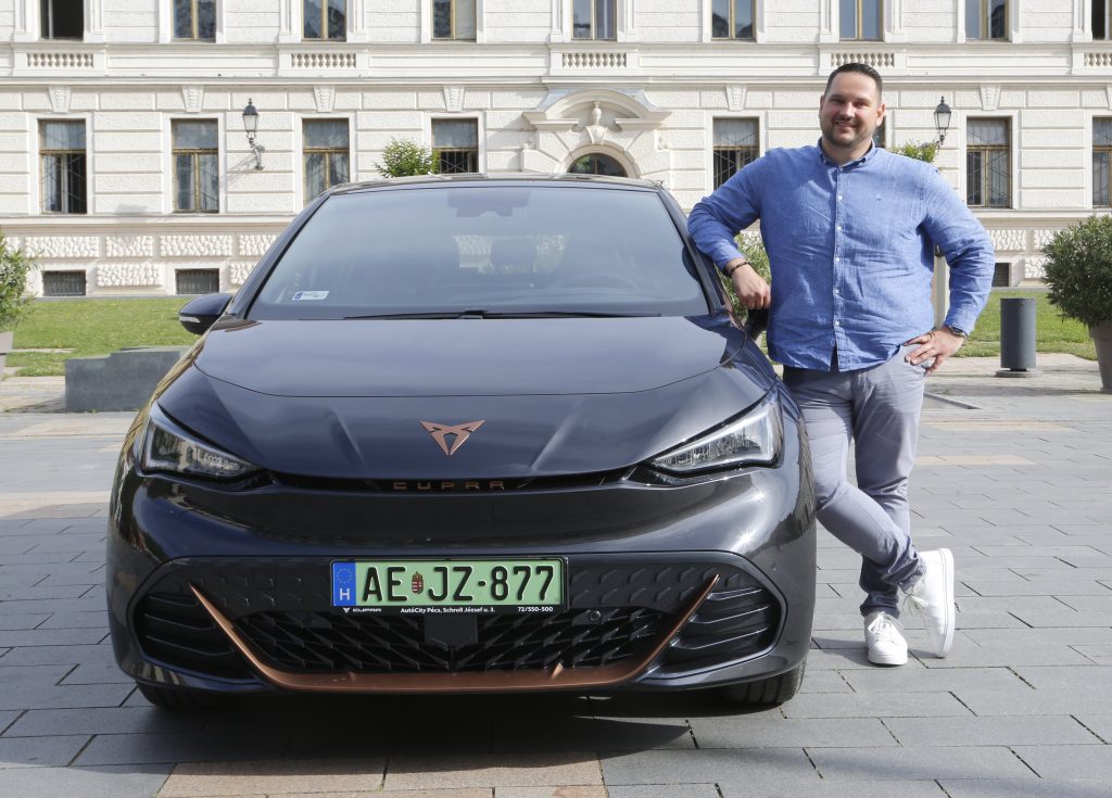 A munkaerő kölcsönzéssel és diákmunka szervezéssel foglalkozó Humánia HRS Group Zrt./Fürge Diák Iskolaszövetkezet régióvezetője, Horváth Zsolt az AutóCity Zrt. elektromos hajtású Cupra Born modelljének nagyobb teljesítményű változatát próbálta ki.