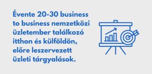 Ugyanilyen fontosak a beérkező üzleti delegációk: külföldi cégek és intézmények érkeznek a térségbe, konkrét együttműködési, befektetési lehetőségeket keresve. Ezek az alkalmak közvetlen üzletkötési lehetőséget és hosszú távú partnerkapcsolatokat eredményeznek.