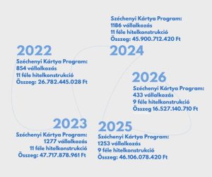 A Széchenyi Kártya Program az elmúlt években dinamikusan bővült: a pandémia utáni újraindítástól kezdve forgalma megsokszorozódott. Kiemelkedő volt a 2023-as év, amikor 1277 igénylést nyújtottak be, és a kihelyezett hitelösszeg meghaladta a 43,7 milliárd forintot. A kedvezményes hitelkonstrukciók a vállalkozások stabilitását segítik elő.